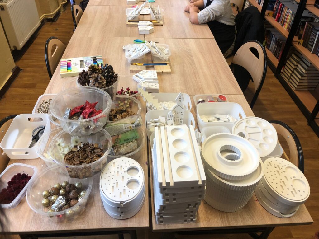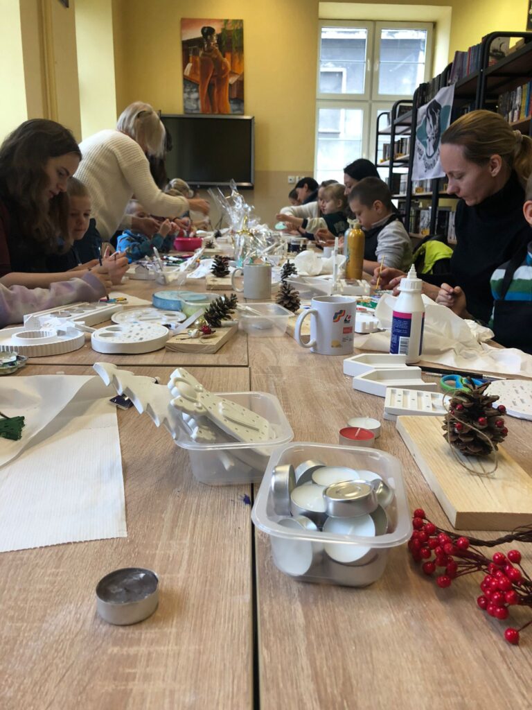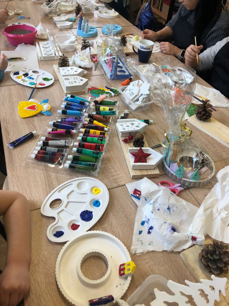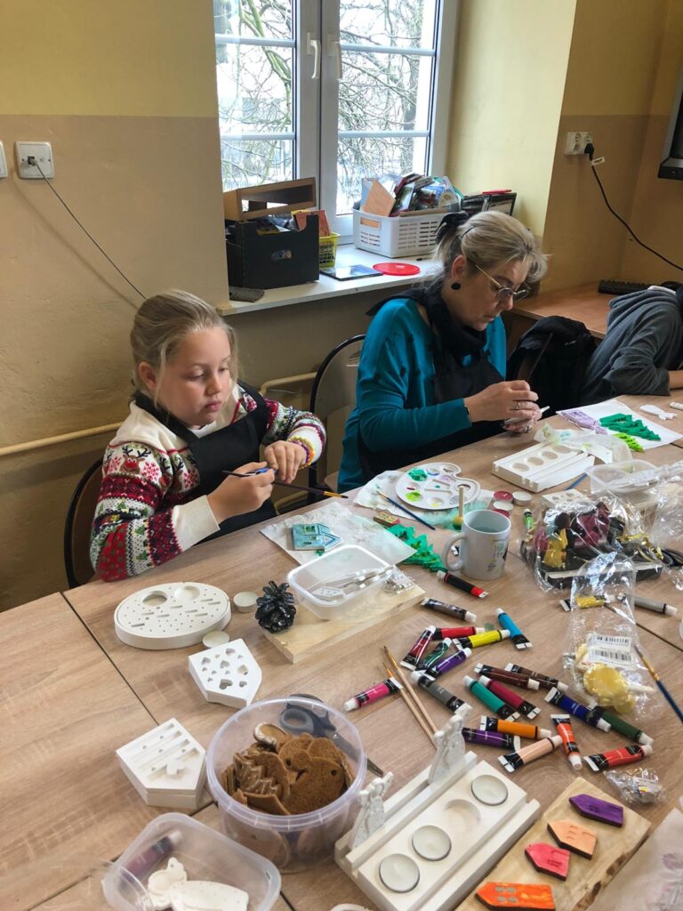 Warsztaty ozdób świątecznych organizowane wraz z Młodzieżowy Dom Kultury w Gliwicach. Święta łączą pokolenia, które wspólnie tworzyły świąteczne ozdoby.
