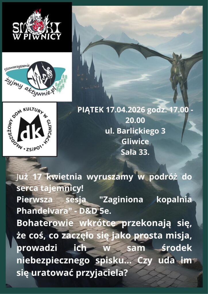 Pierwsza sesja w D&D wraz ze „Smokami z Piwnicy” i MDK Gliwice już 17 kwietniaOpublikowane przez admin w dniu 14 kwietnia, 2026 Kategorie: Uncategorized